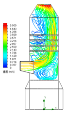 在吸收塔內(nèi)增加均流構(gòu)件能有效改善吸收塔內(nèi)煙氣分布,煙氣和漿液的流場(chǎng)分布影響吸收塔內(nèi)傳質(zhì)、傳熱和反應(yīng)進(jìn)行的程度。
